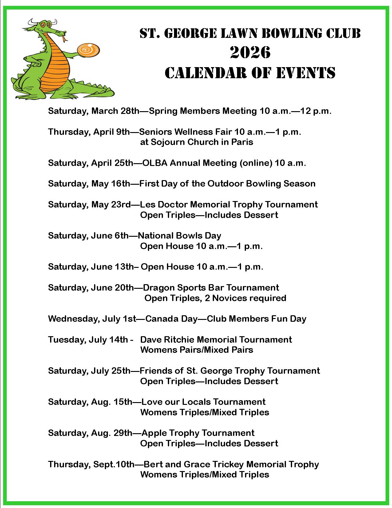 Join St. George Lawn Bowling Club, the most fun club in Ontario (as attested by our Ambassador, George the Dragon, and all our members)